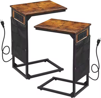 Mesa auxiliar en forma de C con bolsa de tela Mesa auxiliar de metal con 2 puertos USB y toma de corriente para sala de estar