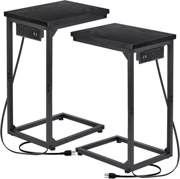 Mesa auxiliar en forma de C con estación de carga para sala de estar, dormitorio, mesa de sofá con puerto USB y tomacorrientes